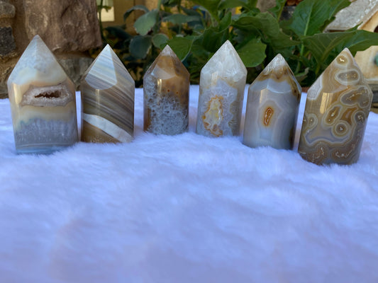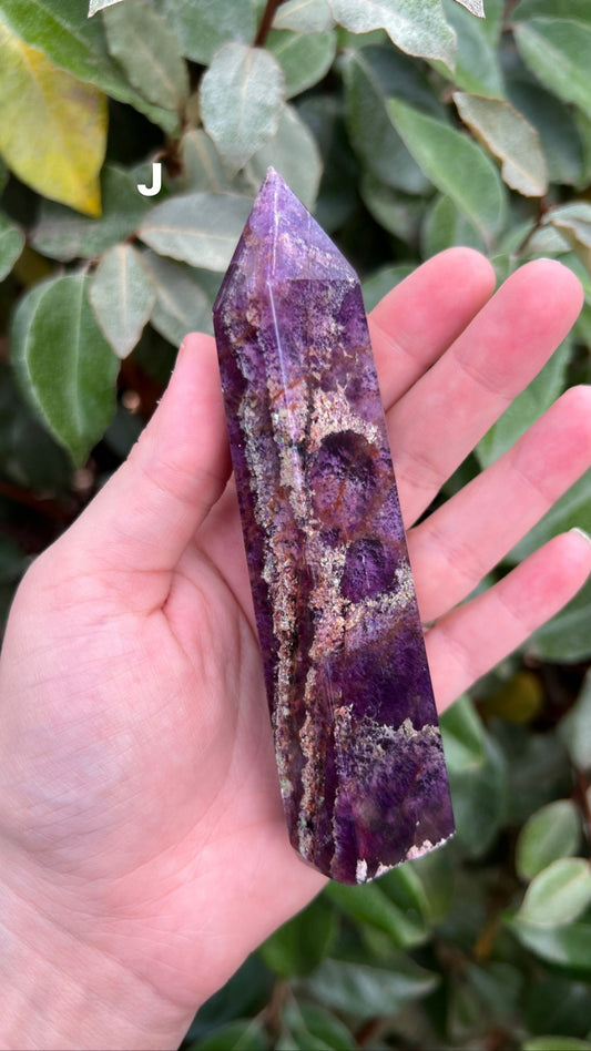 Our towers and points are made from ethically sourced crystals such as clear quartz, amethyst, rose quartz, citrine, fluorite, and more. Whether you're building a crystal grid, decorating your sacred space, or using them in your energy work, these striking formations bring clarity, balance, and intentional energy wherever they are placed.