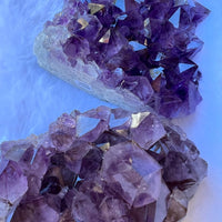 A striking display piece, this natural amethyst cluster brings tranquility and spiritual clarity. Its flat base makes it an elegant addition to any desk, shelf, or bedside table. -